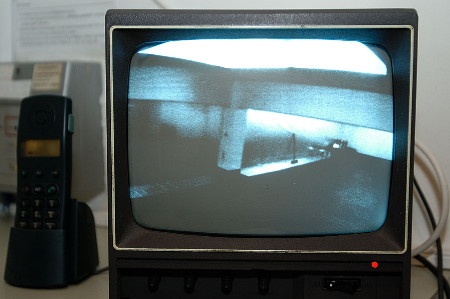 Während es im Hauptraum eine Pflanze war, die das Bild ins System brachte und an physische Funktionen andockte, ist es hier eine Pflanze, die – für einen Augen-Blick – das feste System zu durchbrechen, zu lösen scheint: sie ist das einzige Objekt, das die Spiegelebene durchdringt, scheinbar nur einfach vorhanden ist, doch auch sie erweist sich als gespiegelt-reales Miteinander zweier Hälften. Und sie ist nicht echt…